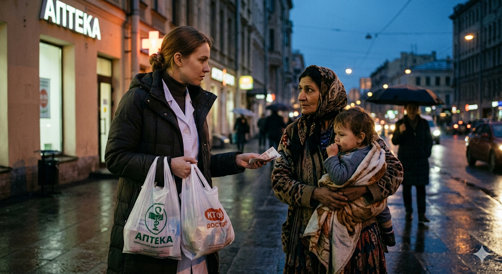 В четверг вечером город накрыл колючий ливень. Ева спешила к метро, когда ей наперерез бросилась смуглая женщина в промокшем платке. К ее груди был прижат тяжело дышащий малыш. Женщина попросила мелочь на еду, но Ева, взглянув на пунцовое лицо ребенка, забыла об усталости.