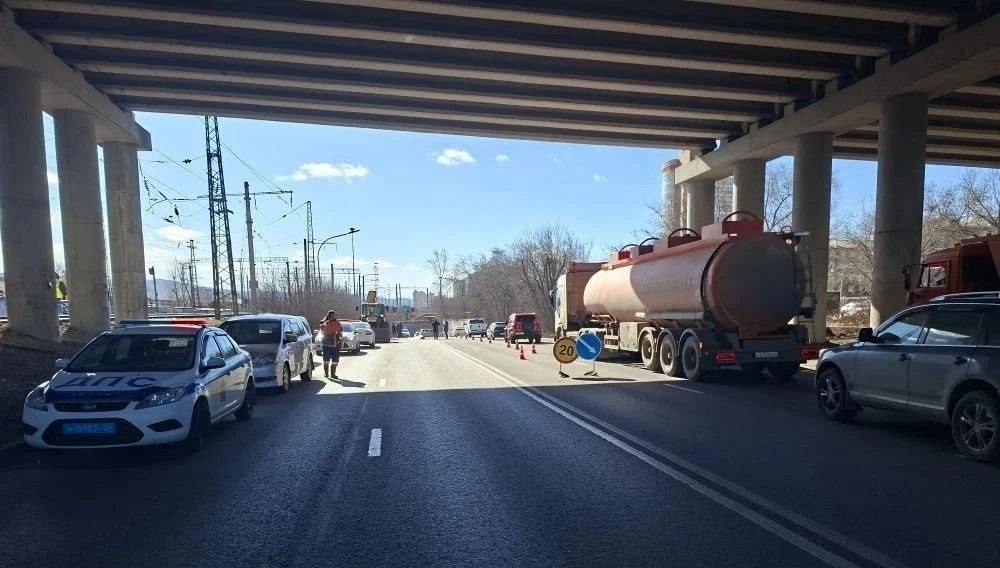 В Красноярске полностью перекрыли Семафорную улицу в районе Мичуринского моста. Об этом водителей предупредили в «Краскоме». Днём в четверг, 9 апреля, на Семафорной в районе дома № 469 стр 7 обвалился участок дороги. Причиной стало повреждение канализационного коллектора, водой из которого размыло асфальт. Сейчас на месте провала ведутся аварийные работы. Чтобы обеспечить безопасность для тяжёлой коммунальной техники, полностью запретили проезд транспорта по Семафорной. — К ремонту канализационного коллектора будет привлечена специализированная организация, имеющая опыт строительства инженерных объектов городской системы водоотведения. Пресс-служба «Краскома» В компании подчеркнули, что при восстановительных работах не будут отключать водоснабжение. Материалы по теме: На трассе в Красноярском крае после ДТП разлились нефтепродукты В центре Красноярска начал разрушаться ещё один дом фото: t.me/kraskom
