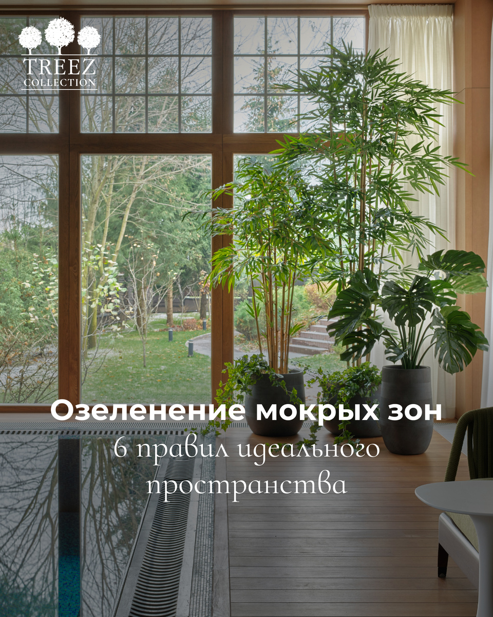 Бассейны, термы, бани и тд. — это зоны особых условий для любого декора. Постоянная влажность, температурные скачки, реагенты, отсутствие солнца или наоборот его избыток ограничивают использование живых растений. Декоративные кашпо также должны соответствовать — быть выполнены из качественных современных материалов. Мы объединили в своих коллекциях природную красоту и технологичность: кашпо и растения TREEZ адаптированы к сложной среде и сохраняют безупречный внешний вид при активной эксплуатации без сложного дополнительного ухода. Листайте карточки ➡️ в них мы собрали 6 советов, как создать надежное стильное озеленение у воды 🏝 * контент создан без использования ИИ