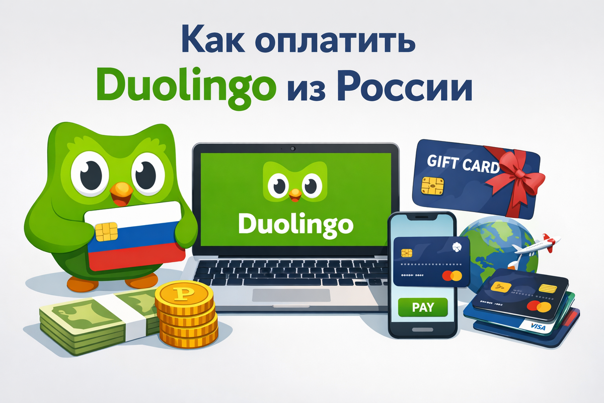 К 2026 году появились более удобные решения. Сегодня подписку Duolingo можно оплатить дистанционно, используя подарочные карты, виртуальные карты или специальные сервисы оплаты.