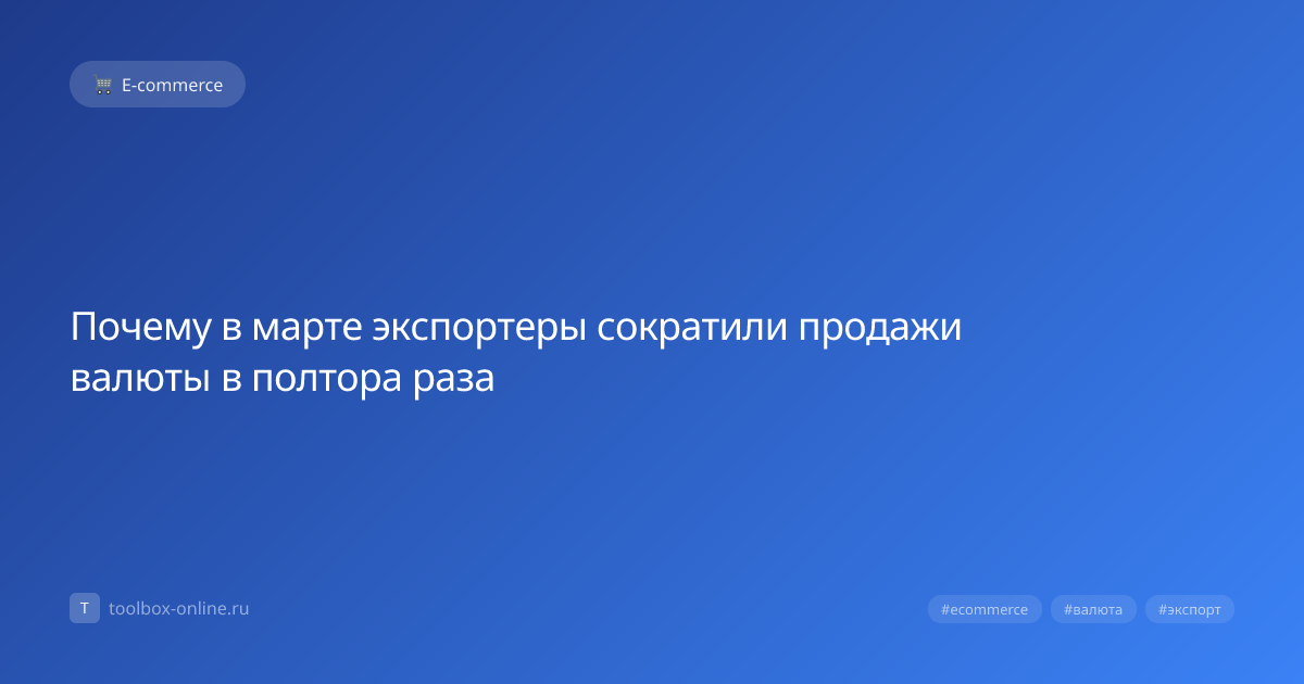 В марте 2026 года крупнейшие экспортеры России снизили продажи валюты почти в полтора раза — с 3,5 трлн рублей в феврале до 2,3 трлн рублей. Такое падение объясняется резким уменьшением спроса на экспортные товары и усилением валютных ограничений со стороны центрального банка. Для онлайн‑продавцов это сигнал к пересмотру финансовых стратегий. Снижение произошло из‑за комбинации факторов: падения мирового спроса, санкций и внутренней политики ЦБ. В частности, экспорт электроники упал на 42% по сравнению с тем же периодом 2025 года, а экспорт сельхозпродукции — на 27%. Онлайн‑торговля сильно зависит от валютных потоков, потому что большинство поставок импортируются из‑за границы. Сокращение продаж валюты повышает стоимость закупок и уменьшает маржу. Импортёрам следует оперативно адаптировать финансовый план и использовать хеджирование. Первым шагом является анализ текущих валютных обязательств. Для быстрого анализа используйте онлайн‑калькуляторы и аналитические сервисы, которые позволяю