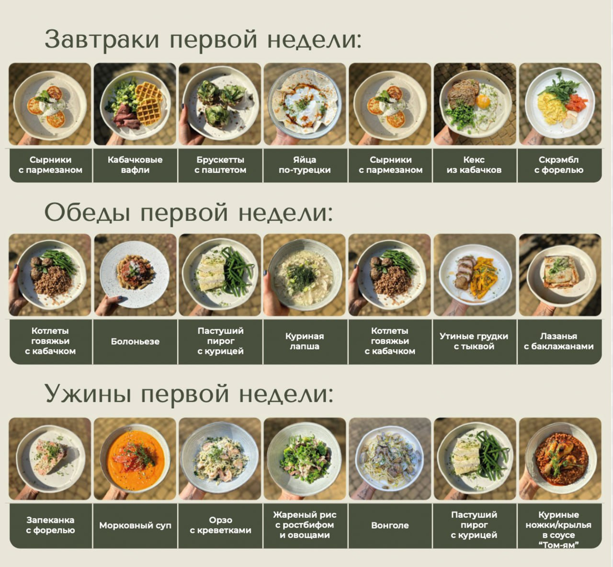 Прочитать полностью про весь челлендж питания можно тут: 2 огромных плюса такого подхода: ✔️ Неважно, будний или выходной день: времени на кухне вы проводите одинаково мало. ✔️ Вы легко контролируете бюджет на продукты, но не теряете разнообразие. Я лично ешё получаю огромное удовольствие, живя по такой системе. Потому что готовить вкусно и эстетично для себя и близких — это мой язык любви. Я: сделала вкусный завтрак за 10 минут Он: сварил кофе, убрался потом на кухне + 1 утро, наполненное любовью ❤️ На «Гастрономии» я научу вас готовить так же за 8-12 недель. Напомню, я запланировала меню на 2 недели на 2 человек. И сделала закупку на 12 000 рублей без экономии и с роскошью: от креветок до вонголе. А потом за 6 часов сделала 20 заготовок — это моё разнообразное 3-х разовое питание. Это позволило мне 2 недели вообще не думать, что есть сегодня. Да и не готовить толком — только 5-10 минут на доготовку, сервировку и подачу. Собирать завтраки, обеды и ужины из заготовок за 5-10 минут — э