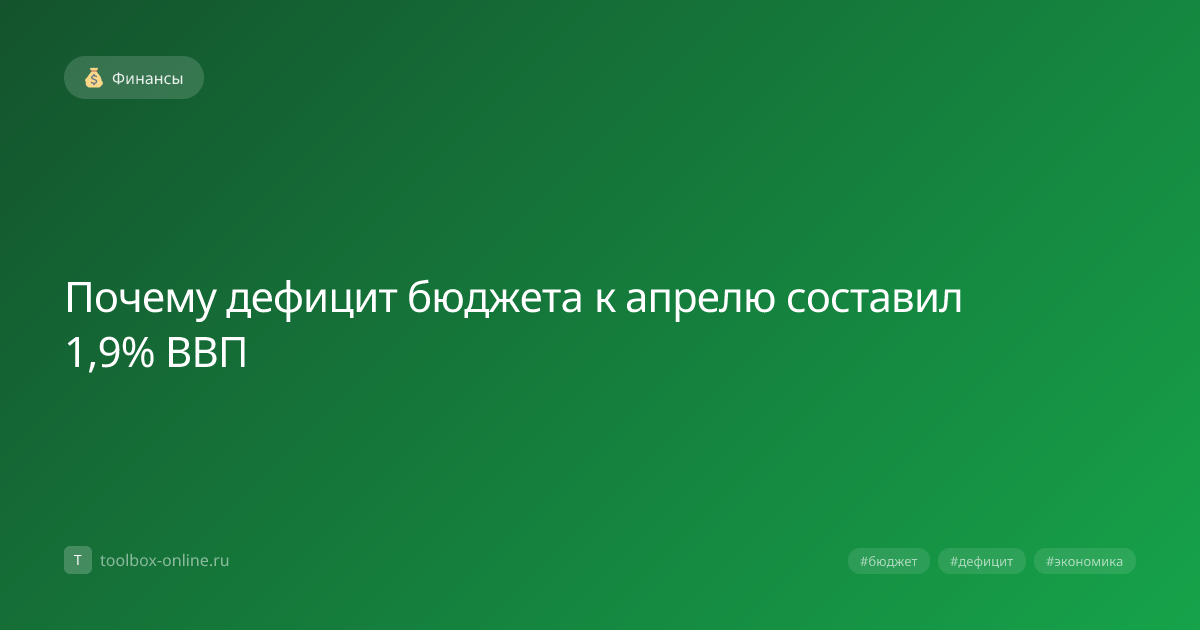 Дефицит бюджета к апрелю 2026 года составил 1,9 % от ВВП, что эквивалентно приблизительно 2,3 трлн рублей, и этот показатель указывает на необходимость корректировки фискальной политики. Рост дефицита отражает как увеличение расходов, так и снижение налоговых поступлений в первом квартале 2026 года. Дефицит бюджета вырос из‑за сочетания нескольких факторов: рост государственных инвестиций, повышение расходов на социальные программы и снижение доходов от налогообложения. В 2026 году налоговые поступления упали на 3,2 % по сравнению с тем же периодом 2025 года. Главные причины включают увеличение расходов на оборону, субсидии энергоносителям и рост инфляции, который привёл к росту индекса потребительских цен на 7,4 % к апрелю. Правительство планирует сократить дефицит за счёт повышения налоговой нагрузки и оптимизации расходов. К концу 2026 года планируется ввести новые ставки налога на прибыль для крупных компаний. Компании должны планировать бюджет с учётом возможного роста налогов и и
