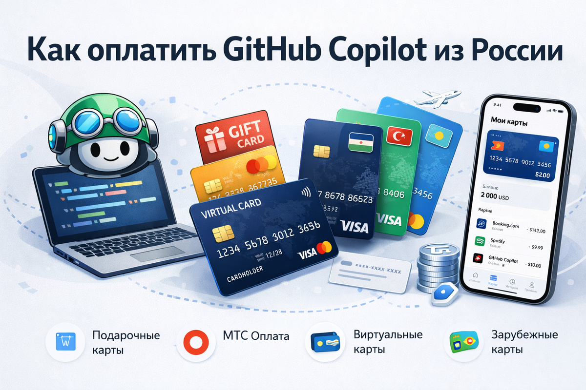 К счастью, сегодня все еще есть альтернативные варианты, которые позволяют оформить подписку GitHub Copilot из России. В этом материале мы собрали основные способы — от подарочных карт и посреднических сервисов до оформления зарубежной банковской карты.