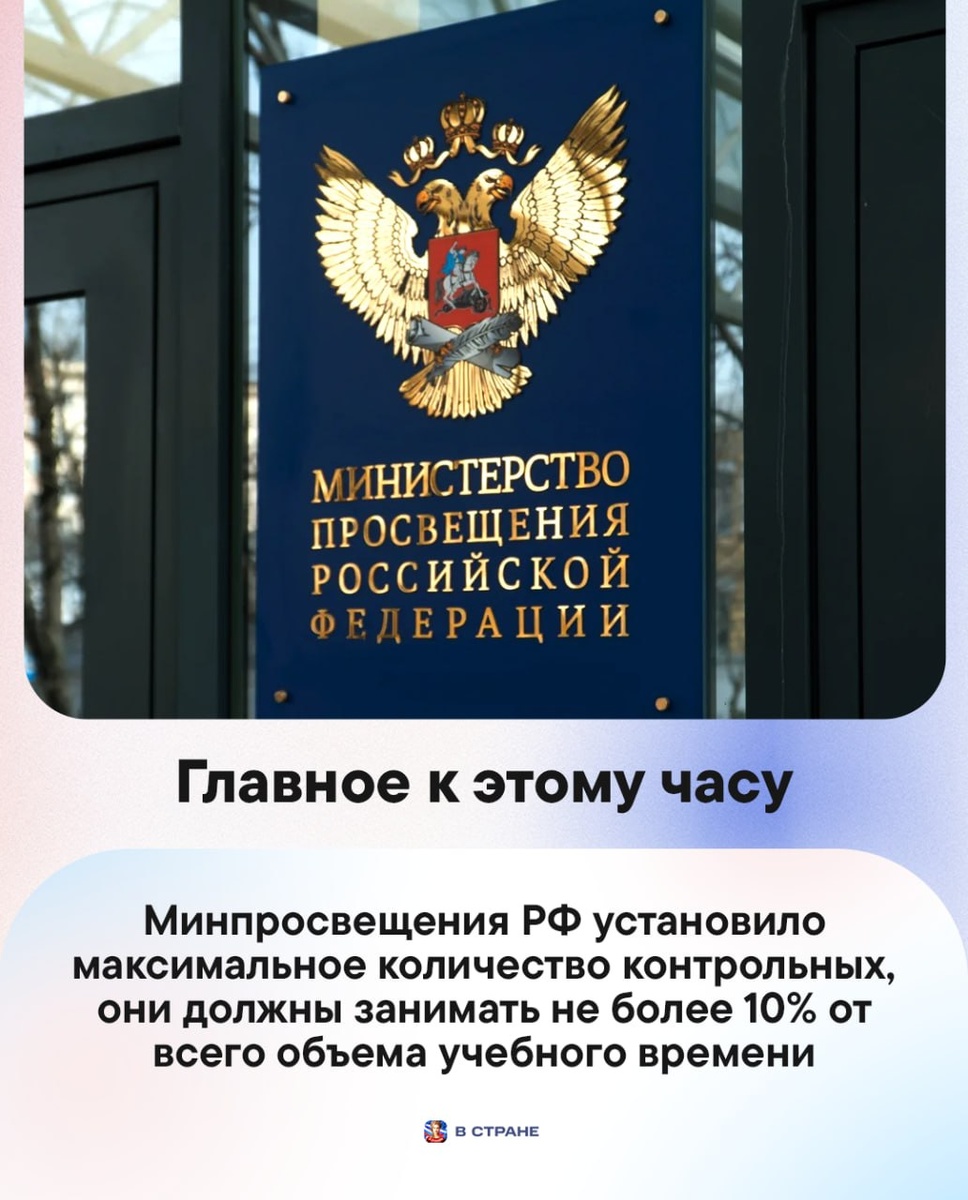 : 🔹Минпросвещения РФ установило максимальное количество контрольных, они должны занимать не более 10% от всего объема учебного времени. 🔹За ночь над регионами РФ перехвачено и уничтожено 69 украинских БПЛА, сообщили в Минобороны. 🔹 В Алтайском крае количество подтопленных участков увеличилось до 157. 🔹 В МВД предупредили о мошенничестве с голосовыми сообщениями в поддержку героев СВО. 🔹Минпросвещения разработает антитеррористическую программу для детсадов. 🔹Эксперты сообщили о снижении интереса к дауншифтингу в России за четыре года. ✅ «В Стране» в MAX