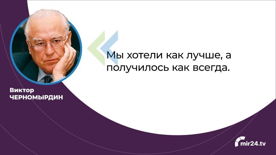 9 апреля 1938 года в селе Черный Отрог Оренбургской области родился Виктор Черномырдин – будущий министр газовой промышленности СССР, председатель правительства Российской Федерации, а также чрезвычайный и полномочный посол России на Украине. И по отцу, и по матери политик происходил из казацкого сословия, рос в многодетной семье и получил техническое образование как инженер-технолог и инженер-экономист, его карьера изначально была связана с переработкой ископаемого топлива. Как говорил сам Черномырдин, «моя жизнь прошла в атмосфере нефти и газа». В 1990-х годах Виктор Степанович стал одним из самых заметных политиков: косноязычие Черномырдина породило множество афоризмов, которые вошли в разговорную речь. Эти высказывания стали предметом для изучения филологами и получили нежное название «черномырдинки». К 85-летию со дня рождения Виктора Степановича MIR24.TV собрал 12 золотых «черномырдинок».