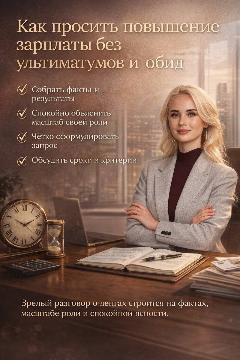 Разговор о повышении зарплаты многим даётся тяжелее, чем самый сложный отчёт, квартальный аврал и три срочных совещания подряд. Потому что деньги — тема чувствительная. Но просить повышение — не каприз и не конфликт, если за разговором стоит реальная опора: результат, уровень задач и взрослая подача. 💬 Главная ошибка — идти в этот разговор из внутреннего раздражения. Когда человек копит обиду, сравнивает себя с другими, а потом приходит с настроением «либо сейчас, либо я всё понял», разговор почти всегда идёт мимо цели. Руководитель слышит не аргументы, а напряжение. Ультиматум редко усиливает позицию. ⚠️ Намного сильнее работает другая логика: сначала собрать факты. Какие задачи вы ведёте сейчас? Что изменилось по сравнению с моментом найма? За что вы отвечаете сверх первоначального объёма? Какие результаты дали бизнесу, команде, процессам? Где вы закрываете риск, держите качество, ускоряете работу, снимаете нагрузку с руководителя? 📌 Важно говорить не только «я много делаю», а ч