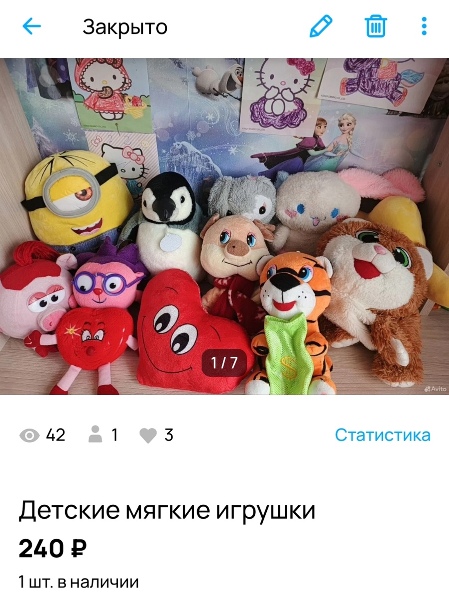 Лот1 - Детские мягкие игрушки +240 рублей. Продавала сразу пакетом. Это уже не первый пакет игрушек, которые я продала. Было очень много, лежали без