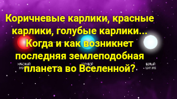 В результате мы получим очень маленькую и очень долгоживущую звезду — красный карлик — и очень крупные, и, наверное, многочисленные планеты типа Земли.