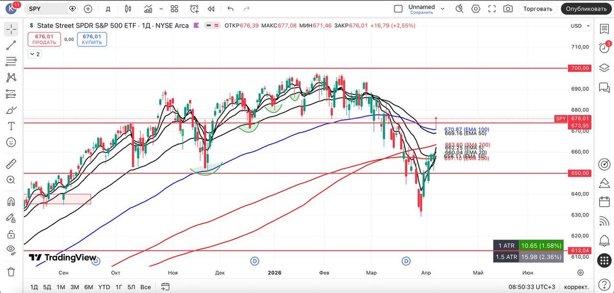 максимуме + $VIX найдёт поддержку на уровне (20$ + 200 EMA D) + $MAGS над 200 EMA D — может выступить сопротивлением. Не забываем активничать: именно в красные дни добавляем позиции. #spy #технический_анализ #америка #трейдинг_сша #фондовый_рынок #обзор #вывод #qqq #vix #smh #mags #xlk #ixic