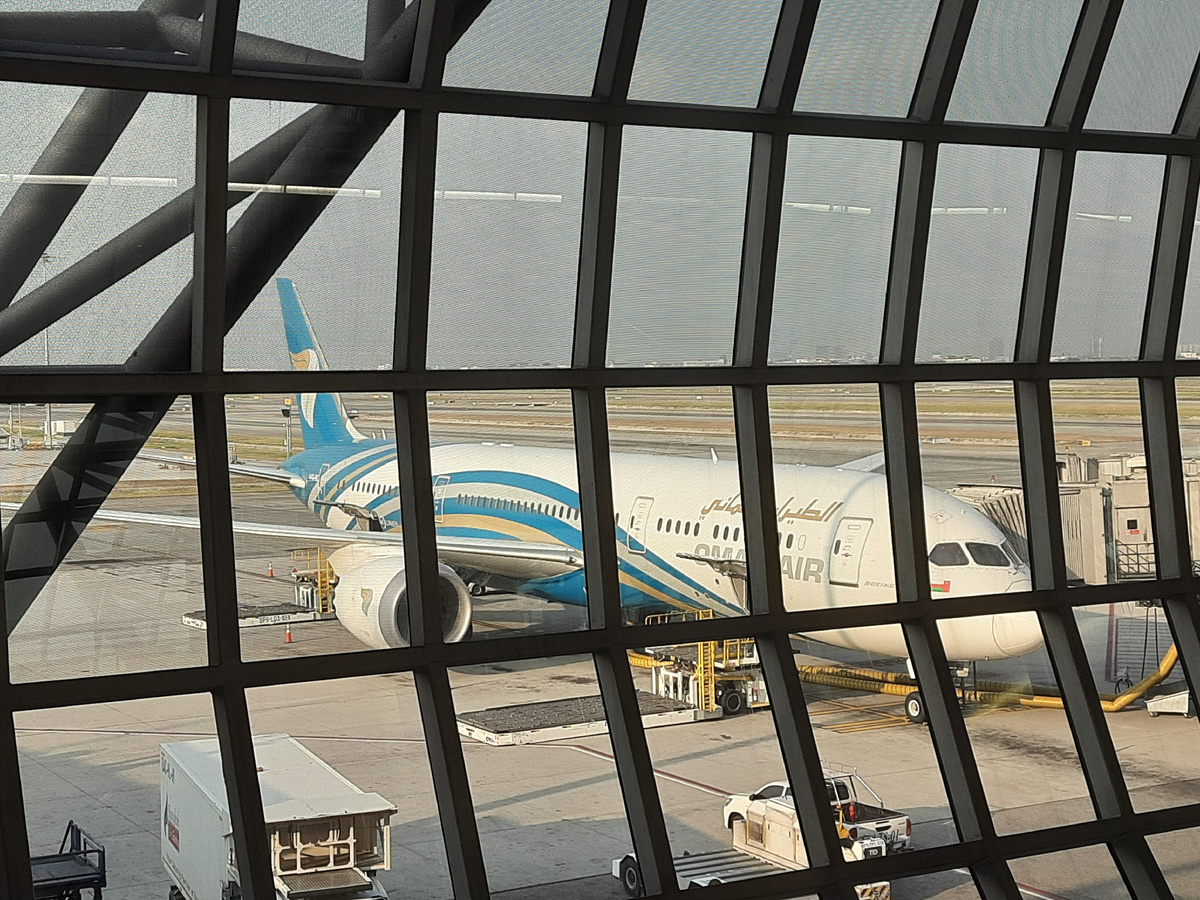 Напомню, что вперёд, в Бангкок, мы летели также с 3-часовой пересадкой в Омане. Билеты покупали ещё в декабре, когда про кризис на Ближнем Востоке ещё никто не знал.