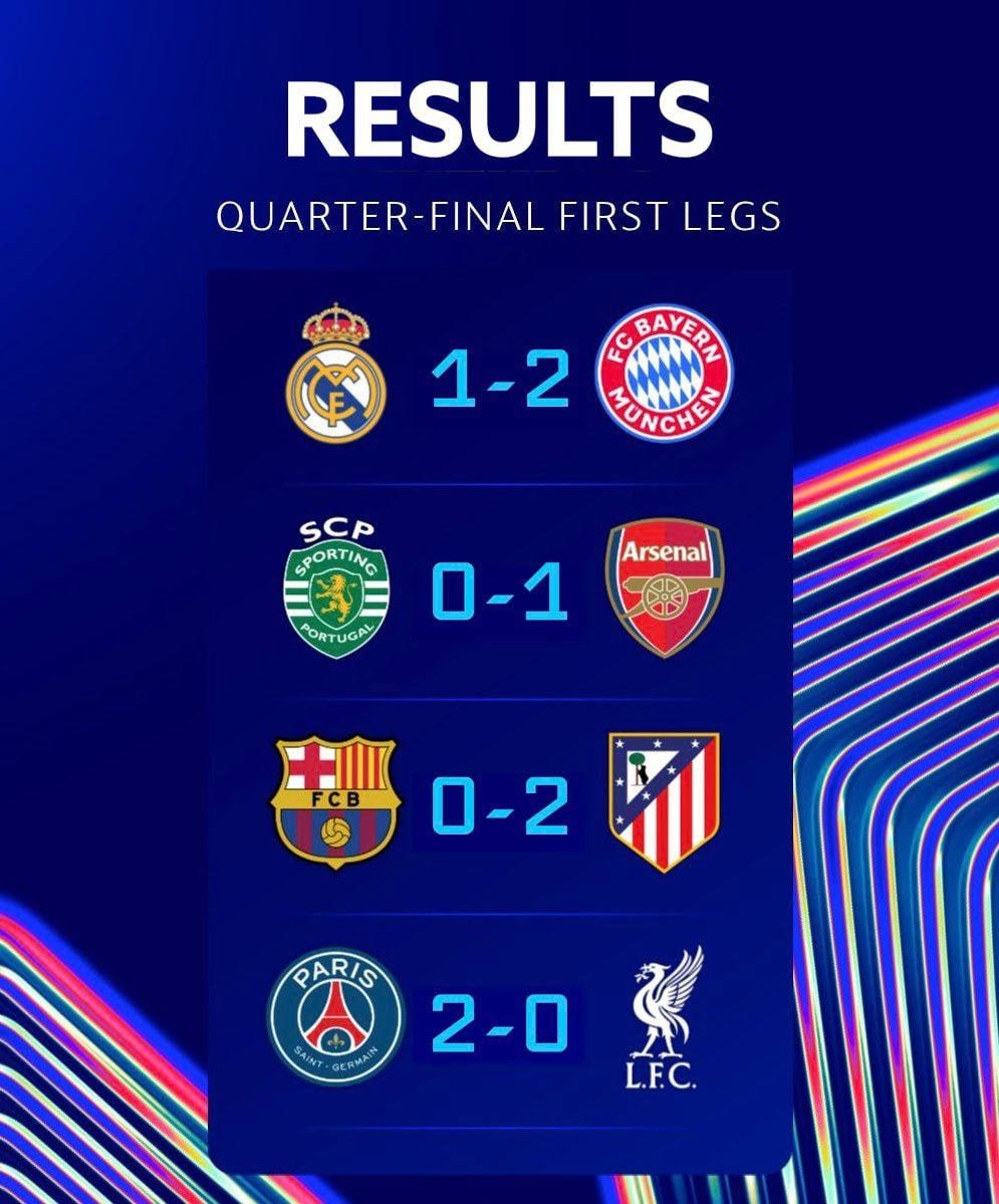 🏆 Все результаты первых матчей 1/4 финала ЛЧ