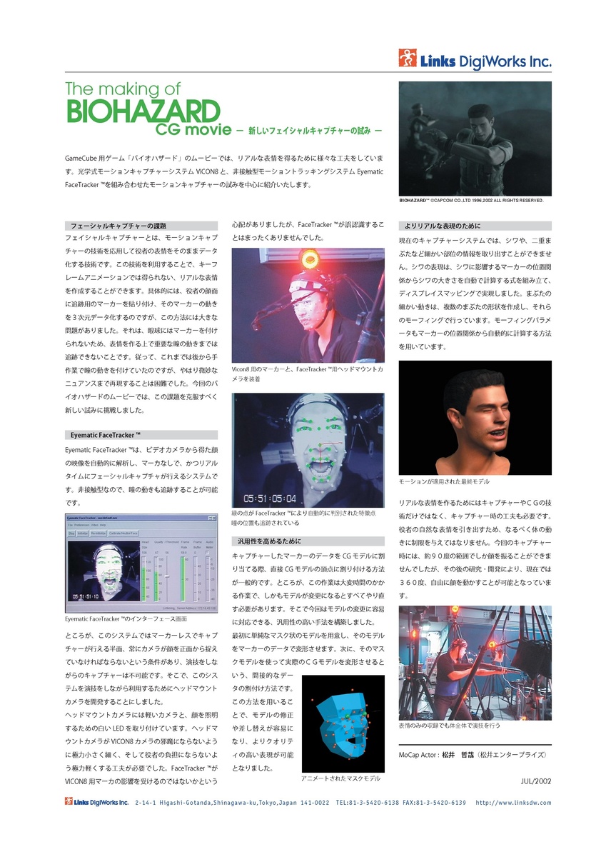 - Студии, предоставлявшей услуги по Захвату Движений и содействию в создании CG-Роликов, в том числе и для Проектов Capcom. Вашему вниманию информативные странички о Создании Видео для Первого REмейка, Первой Онимуши и Третьего DMC. К сожалению, такие файлики сохранились только на японском, хотя, на их сайте были и PDF'ки на английском. Мож потом накидаю скринов с вебстраниц, если восстановлю. @re_and_dmc Dailyhardcore Подписаться