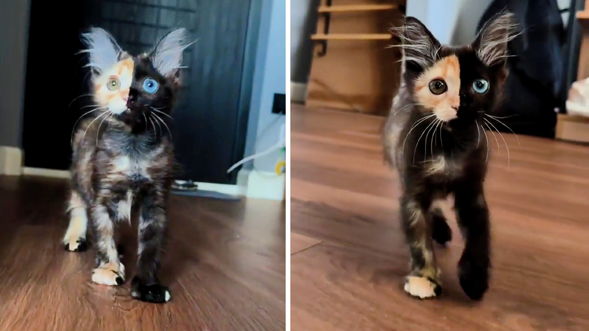 Представьте кошку, чья мордочка будто бы разделена ровно пополам: одна половина — угольно-черная, другая — рыжая, а глаза при этом разного цвета. Это не фотошоп и не проделки искусственного интеллекта, а удивительное творение природы, которое называют химерой.