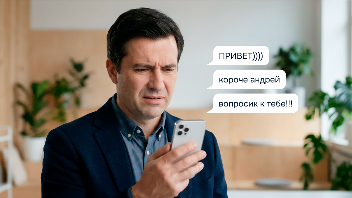 Как это считывается: получатель видит сообщение, открывает его — и не понимает, что от него хотят. Чтобы узнать суть, нужно ответить. Это лишний шаг, который раздражает, особенно если человек занят. В деловой переписке «привет» без продолжения воспринимается как неуважение к чужому времени.