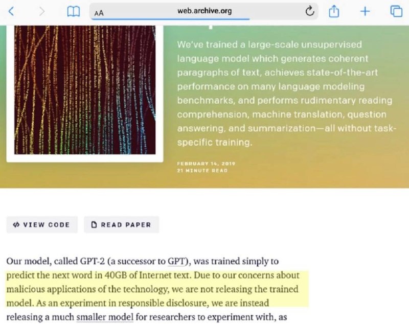 Похожие сомнения высказывались в OpenAI 7 лет назад, когда презентовали GPT-2. В компании опасались, что модель может быть использована злоумышленниками. Журналисты также выражали беспокойство о галлюцинациях (хотя тогда это слово еще не использовалось) и о возможном создании фейковых новостей и спама с помощью ИИ. NeuroFlux #Anthropic #ClaudeMythos #ИИ #OpenAI #GPT2 #безопасность #технологии #галлюцинации #фейковыеНовости #инновации
