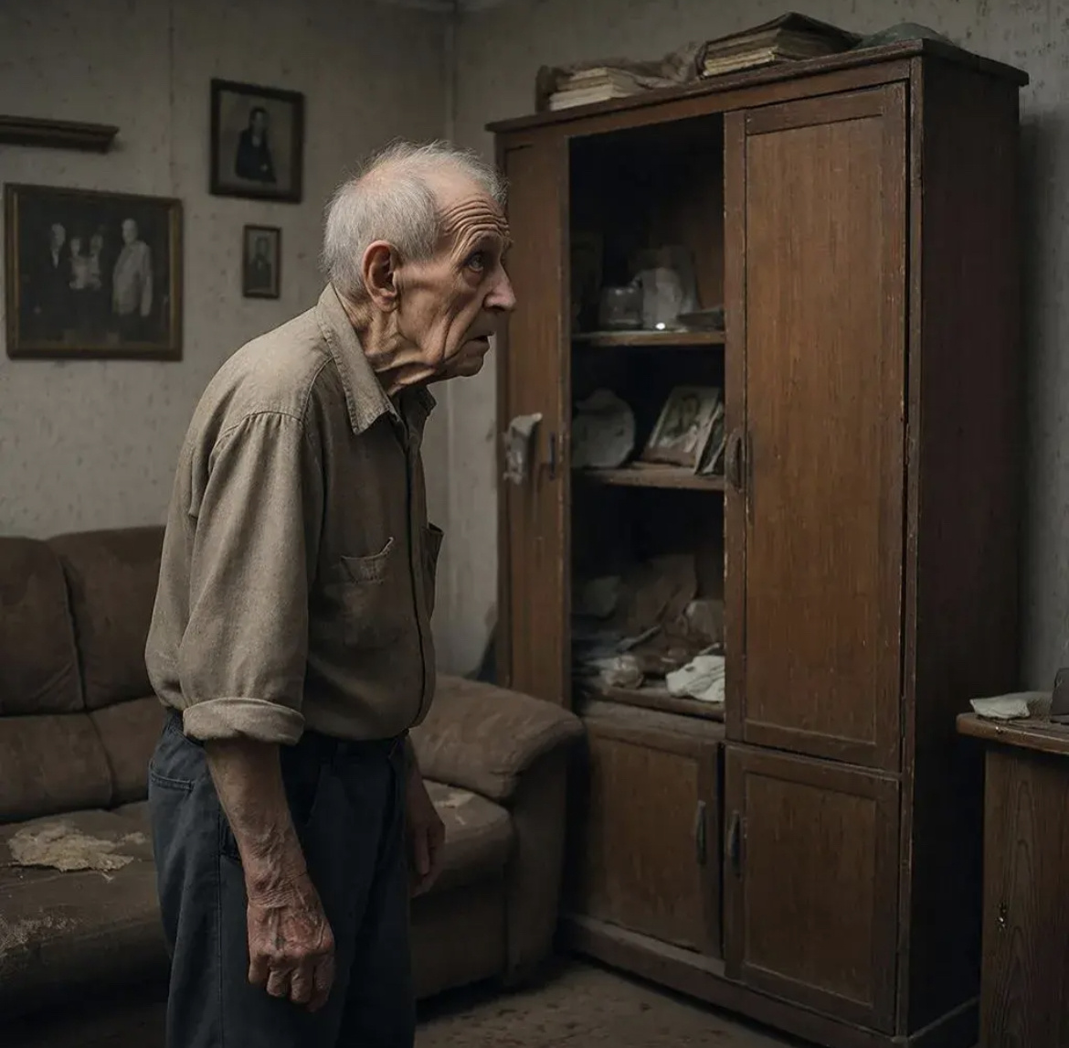 Отец не стал тратить время на слова. Он заслонил собой дочь, чувствуя, как внутри закипает ярость и решимость. В этот момент из угла, где стоял шкаф, донёсся тихий, едва различимый стук — будто кто-то изнутри пытался привлечь внимание.
