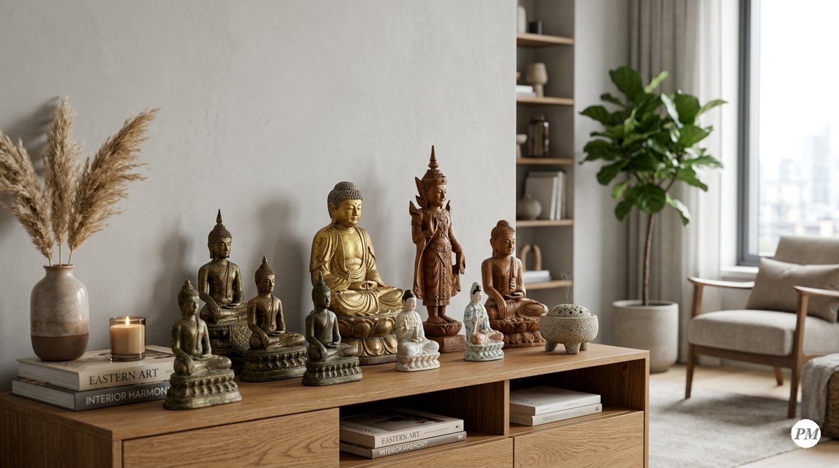 Дизайнеры используют мелкую пластику, чтобы управлять вниманием. Без акцентов взгляд «скользит» по комнате, не задержива
