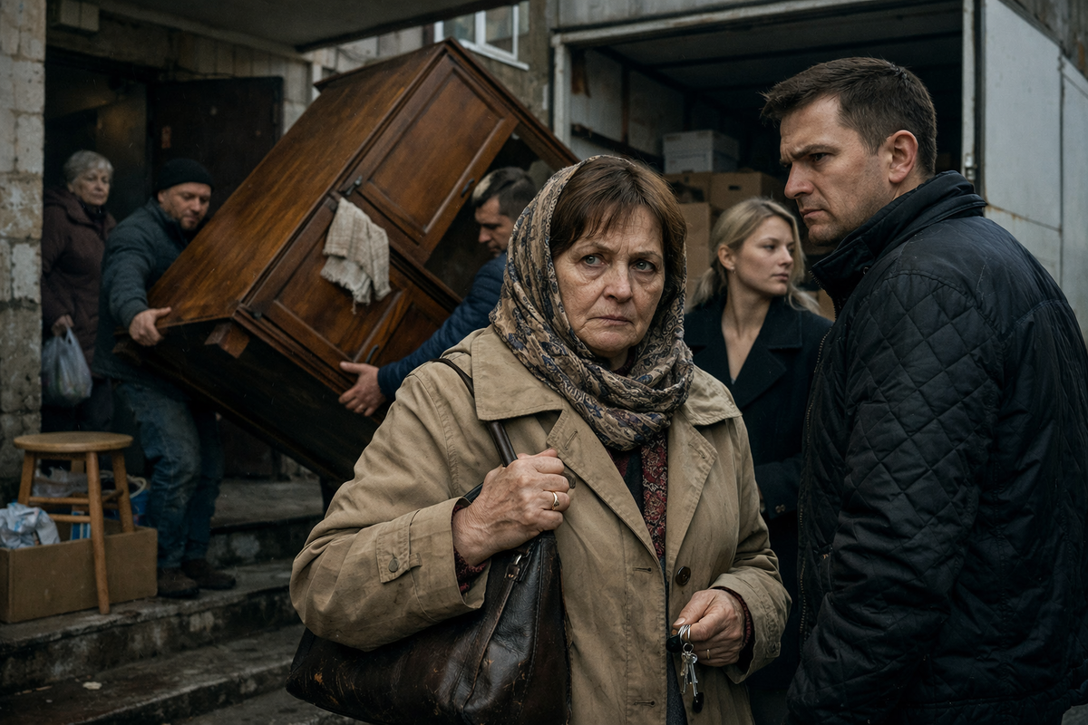Мария Павловна перевела взгляд со шкафа на сына. На Игоре была лёгкая стёганая куртка, новая, с высоким воротом. Она помнила эту куртку: покупали осенью, когда у него на работе опять “задержали”, и платила, конечно, она. У подъезда стояла белая “Газель”, распахнутая настежь. В кузове уже виднелись её табуреты с кухни, коробка с кастрюлями и плед в синих ромбах.
