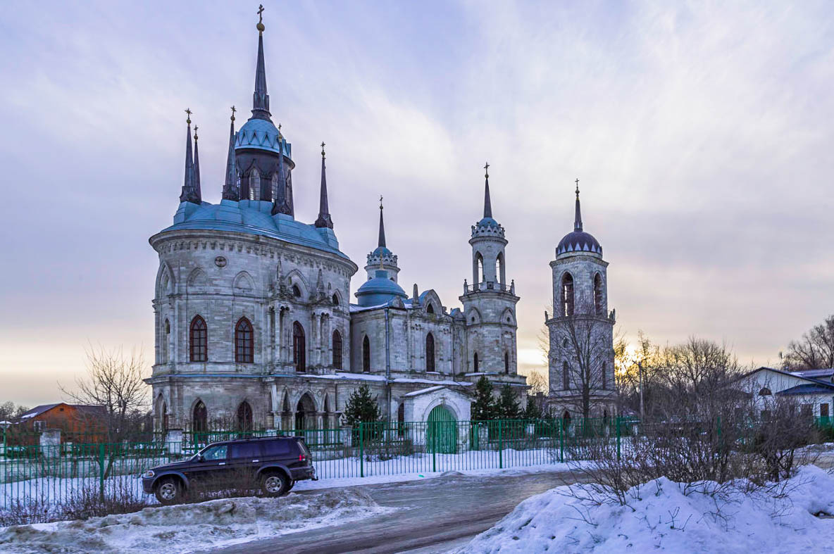 В селе Быково есть уникальная по архитектуре церковь. Ее стараются вписать в объективы своих телефонов все, кто проезжает мимо, либо специально приезжают на нее посмотреть. Здесь практически нереально найти удобную точку, т.к. местные дачки и домики вокруг закрывают перспективу. Церковь эту строил владелец имения и царедворец екатерининского периода, ее авторство оспаривается, но обычно речь идет о двух знаменитых готических русских архитекторах Казакове и Баженове, чьи более крупные постройки - в том числе и знаменитый архитектурный комплекс усадьбы Царицыно известны больше.