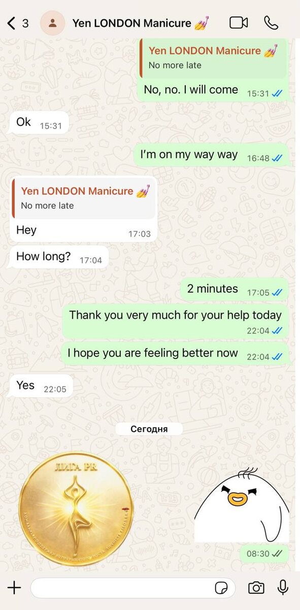 Сегодня утром я открыла переписку со своим мастером маникюра