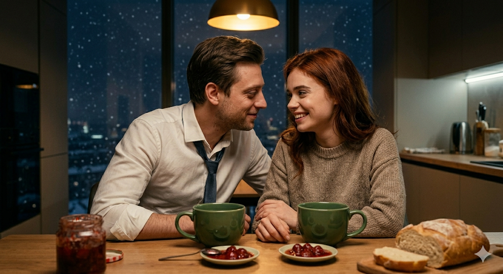 Девушке было явно неловко, но отказать настойчивой женщине она не смогла. На кухне повисло легкое напряжение. Виктор, обычно легко управлявший переговорами на миллионы долларов, вдруг почувствовал себя неуклюжим школьником. София сидела прямо, держа спину, словно струну, и аккуратно держала чашку обеими руками. Ее лицо при свете кухонных ламп казалось еще более тонким и выразительным.