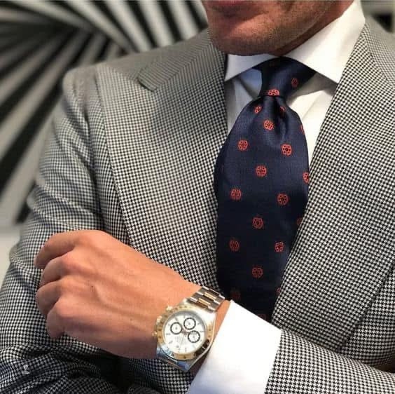 К чему я это все говорю? К тому, что везде нужно следовать разумной пропорции. Узкому костюму - узкие галстуки. Огромным power suitам 80-х 90-х с плечами игроков в американский футбол - широкие галстуки. А золотая пропорция, которая будет правильной всегда - это ширина галстука (а значит и лацкана однобортного костюма) в три дюйма. То есть 7,62 см, сторонникам метрической системы разрешается округлить до восьми.