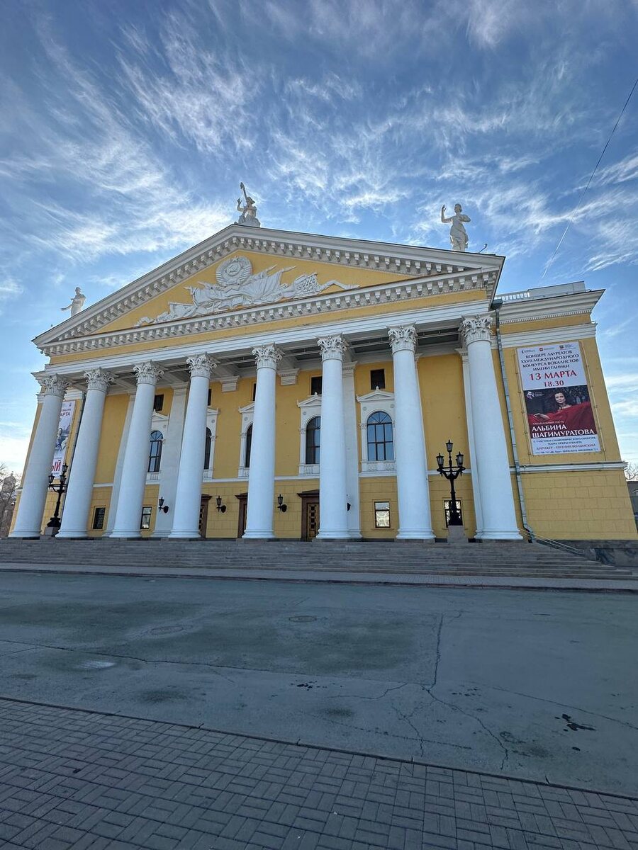 Театр и филармония. Перемещаемся в центр города, чтобы осмотреть объекты культуры. Ампирный театр оперы и балета и здание филармонии (фото 6- 9). Судьба филармонии необычна. Как видно она встроена прямо в дореволюционный пассаж, в котором сейчас располагается художественная галерея. Филармония тоже была ещё дореволюционным зданием. Можно предположить, что также торговым, как и пассаж. После революции оно было перестроено в кинотеатр, а после войны видимо приобрело уже нынешние черты. 📱 Архитекстура #Челябинск