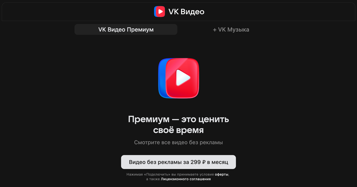 VK запустила «VK Видео Премиум» — подписку без рекламы за 299 рублей в месяц