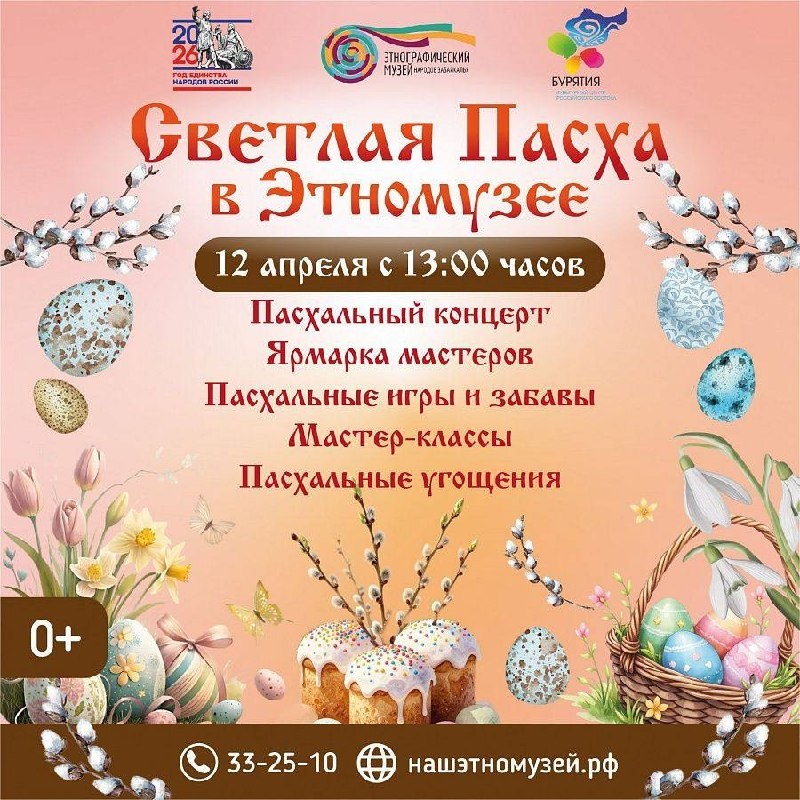 12 апреля в 13:00 часов начнутся праздничные мероприятия Пасха - самый светлый и радостный православный праздник, в нем совпадают глубокие христианские мотивы и радость пробуждения природы к новой жизни. После суровой зимы, трудного, долгого поста, сдержанности и чистоты помыслов, душа воспаряет ввысь. Этот праздник объединяет многовековые традиции и семейные обычаи, передающиеся из поколения в поколение. Через символы и домашние ритуалы люди возвращаются к главным ценностям — вере, надежде и внутреннему обновлению. Потому долгожданная Пасха так богата развлечениями и забавами. Для гостей музея будет организован праздничный концерт с яркими, весёлыми, задорными песнями и танцами, площадка с мастер-классами по росписи, аллея из гигантских яиц для совместного творчества родителей и детей, а народные игры и хороводы позволят всем гостям в полной мере насладиться праздником. И по традиции угостим гостей праздника праздничными куличами и пасхальными яйцами, от наших друзей и постоянных