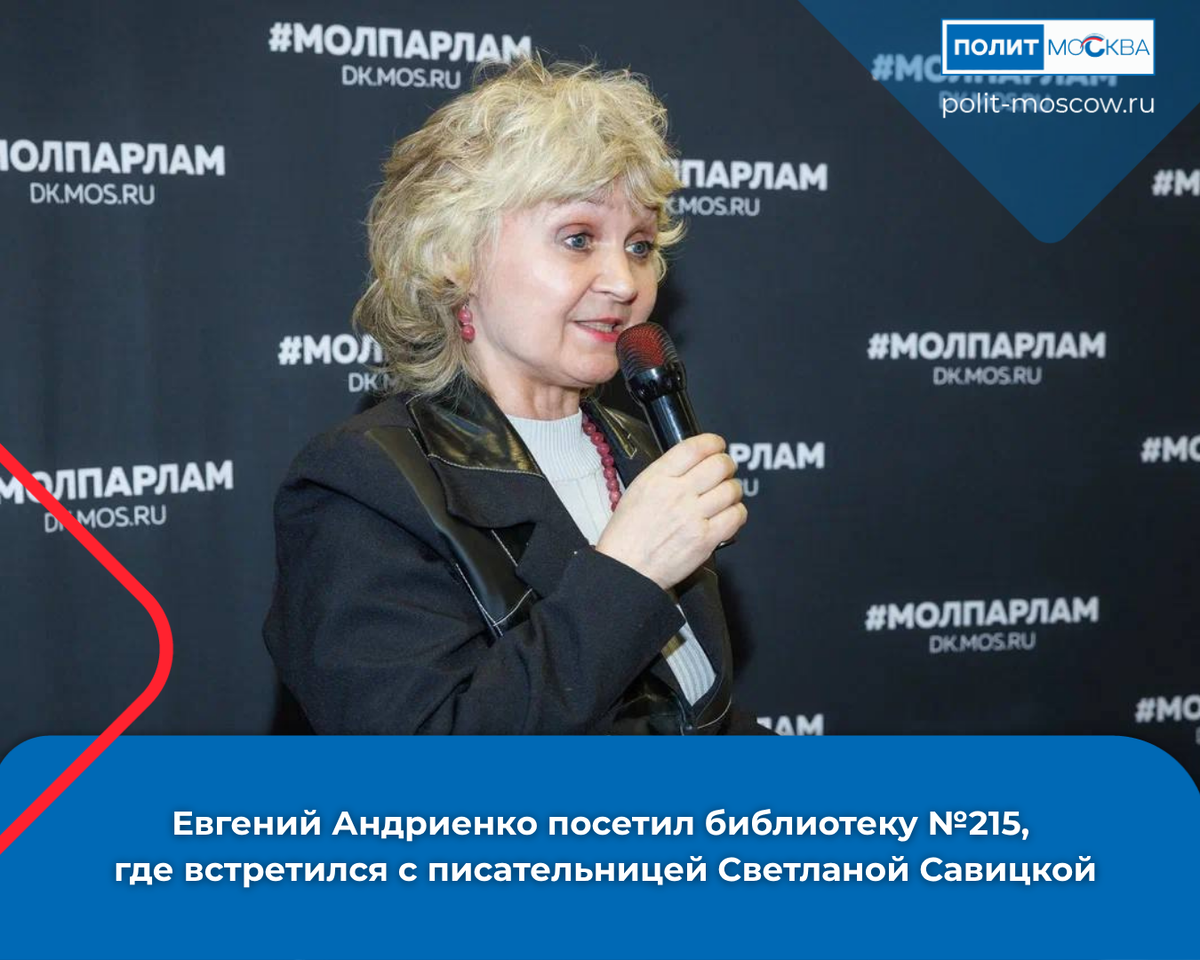 Директор Центра развития Москвы Евгений Андриенко посетил библиотеку №215, где встретился с писательницей Светланой Савицкой