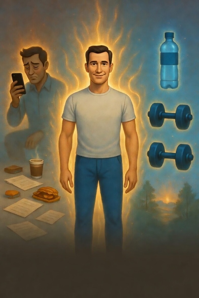 Есть одна вещь, которую многие долго не замечают. Мы можем годами работать над мышлением, отношениями, границами. Читать книги. Разбирать себя. И при этом… регулярно предавать самое базовое — своё тело. Казалось, что это разные уровни. Тело — это отдельно. Психология — отдельно. Жизнь — вообще отдельно. Пока в какой-то момент не начал замечать странное. Чем хуже я обращался с телом — тем сложнее было держать границы. Недосып. Постоянная усталость. Еда «на бегу». Сахар, кофе, чтобы дотянуть до вечера. Спорт — только когда «уже совсем прижало». И на этом фоне — знакомое состояние. Ты уставший. Раздражённый. Но при этом соглашаешься. Помогаешь. Берёшь на себя лишнее. Потому что сказать «нет»… как будто нет сил. В книге «Хватит быть славным парнем» есть простая мысль: Это ещё и про контакт со своим телом. Про силу, на которую можно опереться. Там есть история про мужчину по имени Трэвис. Ему за пятьдесят. Успешный адвокат. И при этом — алкоголь, наркотики и разваливающаяся жизнь. Когда он