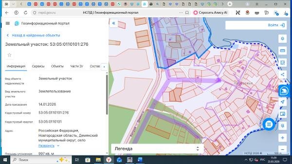 Название: Земельный участок площадью 997 кв.м., с кадастровым номером 53:05:0110101:276, по адресу: Российская Федерация, Новгородская