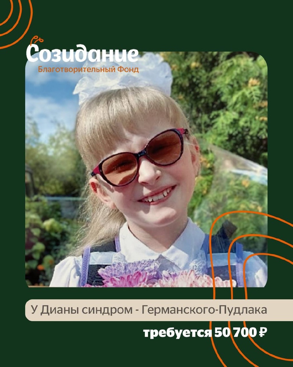 направить Диану с диагнозом "альбинизм" к специалистам, изучающим редкие генетические заболевания глаз. Диане провели высококвалифицированную диагностику, ей подобрали грамотную очковую коррекцию и был сдан генетический анализ. По его результатам, увы, у Дианы обнаружили более серьезный синдром — Германского-Пудлака, при котором помимо проблем с глазами наблюдаются плохая свертываемость крови, а также возникают проблемы с почками, кишечником и легкими. 🙌 В этом году девочке снова нужно пройти обследование, и мама вынуждена обратиться в фонд: "Прошлый год выдался для нашей семьи очень тяжелым — старшего сына сбила машина, и он долгое время находился на лечении. Мы потеряли близкого и родного человека, нашу помощницу — бабушку. Я воспитываю детей одна, и без вашей поддержки нам не справиться." Поддержите семью любой, комфортной для вас суммой на сайте фонда "Созидание"