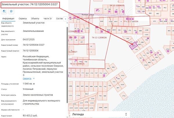 Название: Земельный участок с кадастровым номером 74:12:1205004:3327 площадь 1040 по адресу Российская Федерация, Челябинская область