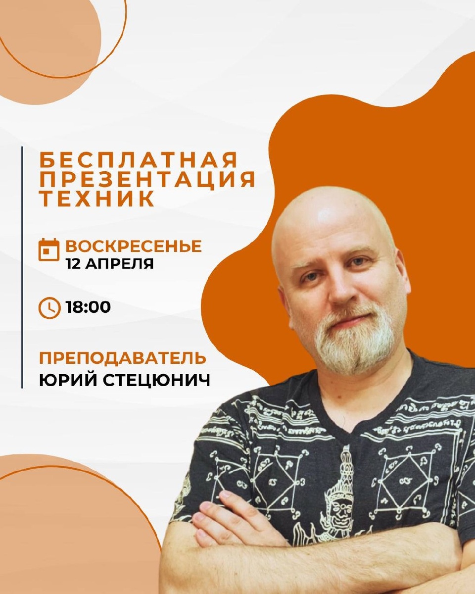 Это отличная возможность познакомиться с преподавателем и узнать, что вас ждёт на грядущих семинарах Что будет на встрече: ✔️презентация двух техник от Юрия Стецюнича: - Миофасциальный ребаланс таза - Миофасциальный ребаланас шеи ✔️подробный разбор подхода и особенностей работы ✔️ответы на вопросы по обучению 🗓 12 апреля, воскресенье ⌚️ 18:00 📍 Максима Горького, 10 ✍️ Запись на презентацию: Телефон: +7 (963) 454-75-72 Telegram: t.me/zscmt
