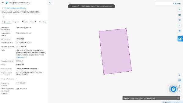 977 кв. м, местоположение: Тульская область, муниципальный район Ясногорский, с. п. Иваньковское, с. Богословское, южнее земельного участка с кадастровым номером 71:23:040310:1820, виды разрешенного использования: для индивидуального жилищного строительства. Канал: Госземля Тульская область Область: обл Тульская муниципальный район Ясногорский Район: с. п. Иваньковское Населенный пункт: с. Богословское, южнее земельного участка с кадастровым номером 71:23:040310:1820 Локация: Смотреть на карте ВРИ: Для индивидуального жилищного строительства Кадастровый номер: 71:23:040310:2336 Кадастровая стоимость: - Вид сделки: Аренда Площадь: 977 м² Начальная цена: 62000.00 руб. Дата завершения: 20.04.2026 Подробнее: ГИС ТОРГИ #госземля #земляотгосударства #земля #земельныйучасток #земельныеторги #торги #аукцион #арендаземли #аренда #тульскаяобласть