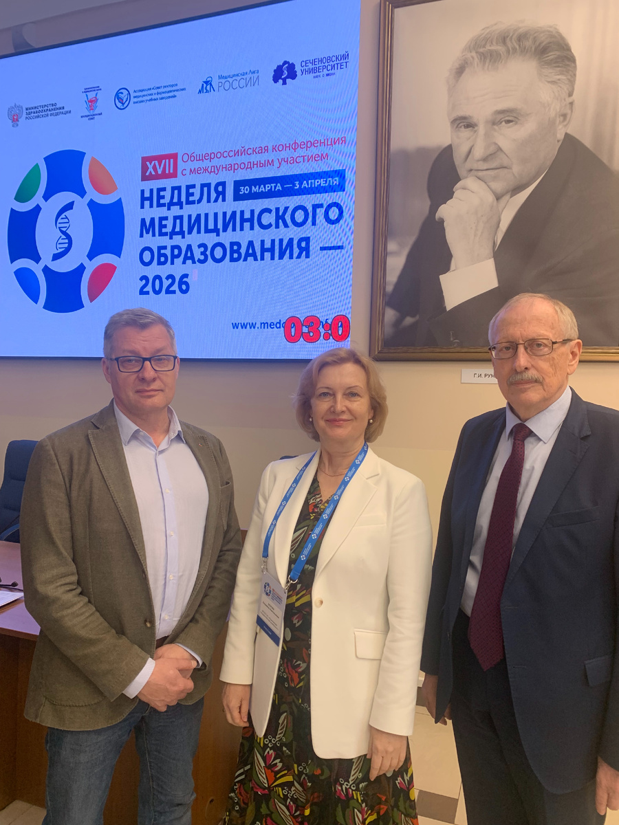 В Москве на базе Сеченовского университета прошла XVII Общероссийская конференция с международным участием «Неделя медицинского образования-2026», где 3500 участников — представителей 150 образовательных организаций России, ближнего и дальнего зарубежья обсудили новые подходы к медицинскому образованию и подготовке кадров нового поколения. УлГУ на мероприятиях тематической недели представляли проректор по инновационному развитию и цифровой трансформации Дмитрий Шабалкин, директор Института медицины, экологии и физической культуры Виктор Машин и декан медицинского факультета Людмила Белова. В программу вошли XI Всероссийский студенческая олимпиада по практической медицинской подготовке «Золотой МедСкилл», пленарное заседание «Архитектоника медобразования-2026: стратегия развития, возможности и риски», тематические секции, лекции от лидеров мнений, семинары и мастер-классы по ключевым направлениям медицинского образования. Открывая мероприятие, министр здравоохранения РФ Михаил Мурашко о