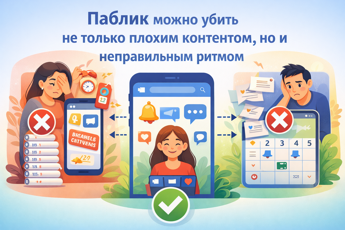 О дизайне, охватах и рекламе говорят постоянно. А вот о ритме публикаций – редко. Хотя он убивает паблик ничуть не хуже слабых текстов. Обычно здесь две крайности.