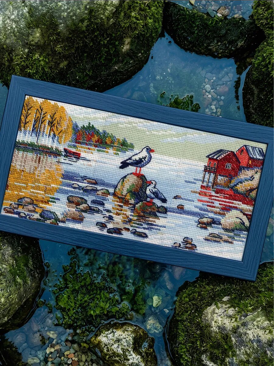 Всем большой вышивальный привет! Фирма Риолис меня удивила. Вообще я ровно дышу к этому производителю, но тут они смогли заинтересовать даже меня. Они выпустили новинку - арт. №2328 "У озера". Но это не просто набор, а набор-трансформер. Можно вышить его одной картиной А можно сделать из одного набора три картины Кто зарекался не делать спонтанные покупки? Я! Кто их все равно делает, толком не обдумав? Я! Как вы поняли, мне настолько стало интересно, как набор-трансформер выглядит в реальности, что я его заказала и он ко мне едет. Нет, я не скажу, что это совсем покупка необдуманная - минут 10 я думала над ее совершением. Но тут все сложилось - и любопытство, и сюжет. Я люблю морские и озерные пейзажи, лодки, чаек, домики и воду вышивать. Поэтому тематика моя. Вот шерстью вышивать не очень люблю, но ничего, переживу. Главное - сюжет. Набор не очень дорогой - цена на Вайлдберриз 677 рублей. В наборе канва 14 каунта, нитки на плашках шерсть/акрил 19 оттенков. Идет одним набором, а не т