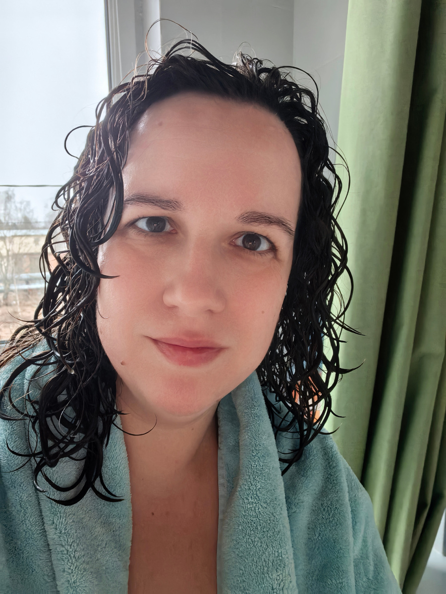 В то же время по описанию с другого сайта я зацепилась за фразу про повреждённые химической завивкой волосы и вообще отнесла их к высокопористым. Но, посмотрев на фото-примеры, поняла, что мои волосы всё же скорее низкопористые или среднепористые. В общем, нужна помощь зала 🤣