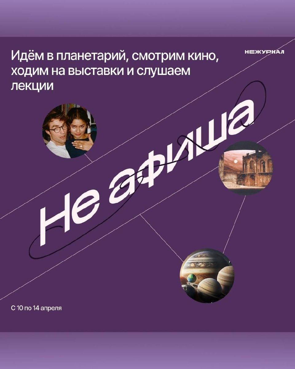 • Река нашего сердца • Экскурсия в Планетарий • SUMMER OF HAZE • Мастер-класс по мозайке • Горизонт событий • Контрастный душ • Лекторат • Когда выключат свет 📰 Подпишись на «Не журнал» | Поддержать донатом