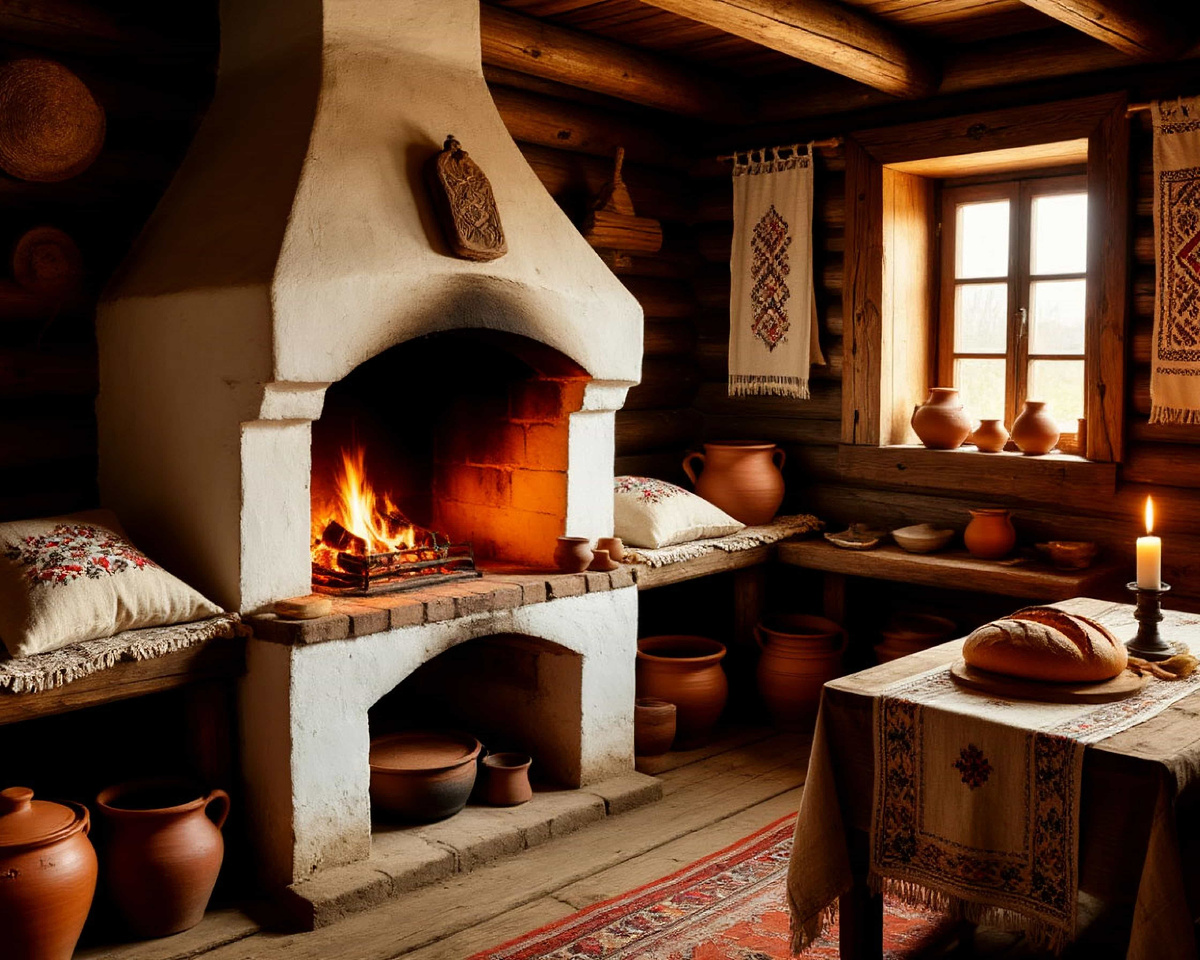 Если покутье — самое священное место в доме, то печь — безусловно, самое мистическое. Печь почитали издавна: она давала тепло и возможность готовить пищу и выпекать хлеб, а главное — в ней жил огонь, защитник и хранитель семьи, проявление Огня-Сварожича.