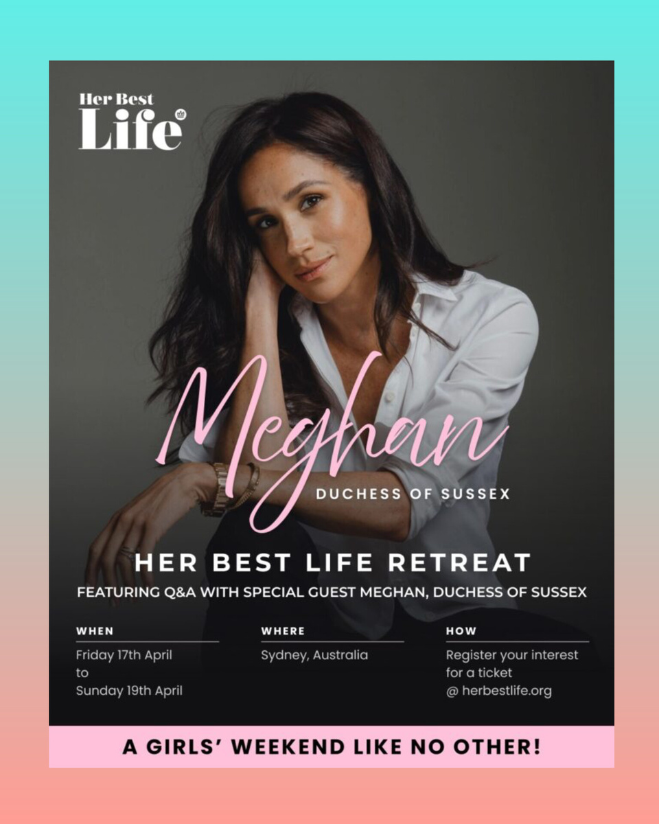 Австралийские гастроли Меган, похоже, не вызвали большого ажиотажа среди поклонников, так как стало известно, что билеты до сих пор не раскуплены. Также сообщается, что оздоровительный ретрит с участием герцогини пройдёт в невзрачном конферен-зале, который своим убранством больше напоминает столовую общепита.