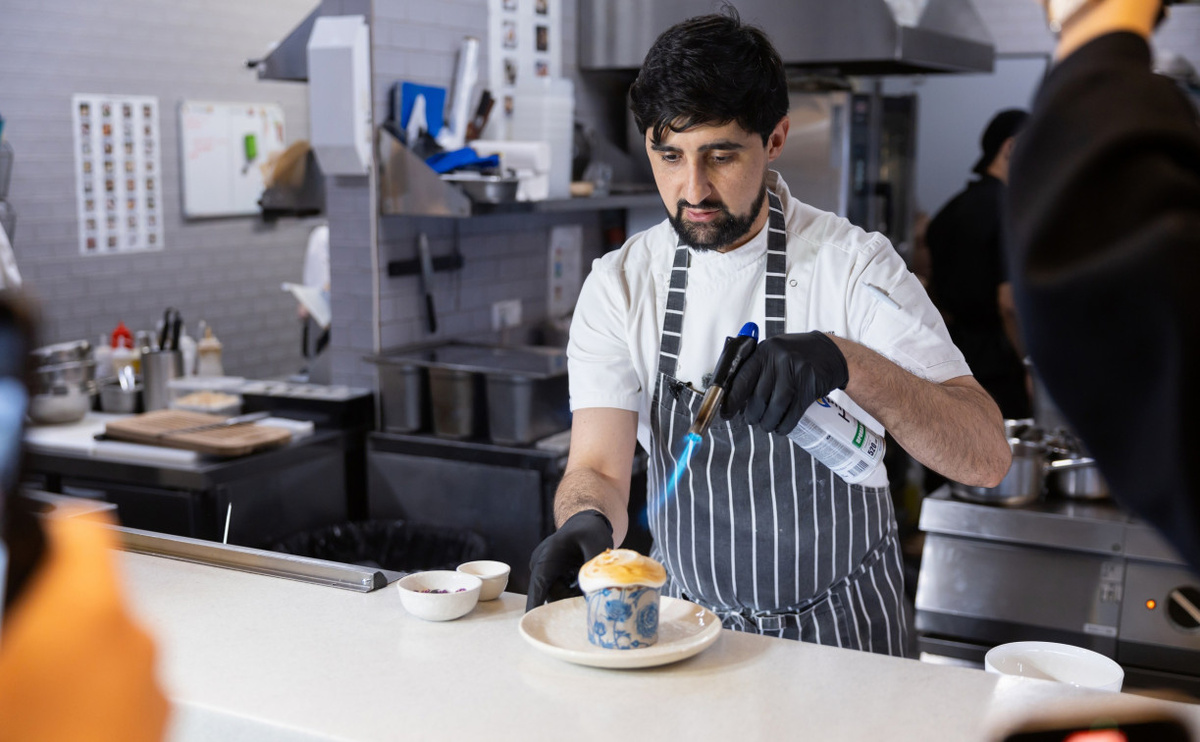 Также Арман показал нам мастер-класс по обжиганию меренги на куличе — это всё так вкусно и ароматно!