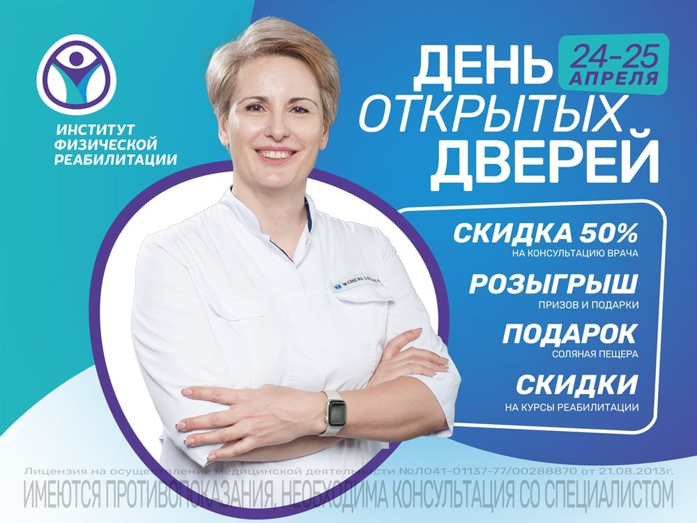 😇 В Институте Физической Реабилитации мы помогаем сохранять здоровье опорно-двигательного аппарата с помощью доказательных методик и программ лечения, подобранных индивидуально для каждого пациента с учетом диагноза, сопутствующих заболеваний и целей реабилитации. Приглашаем на День открытых дверей 24-25 апреля! Сможете задать свои вопросы врачам и получить персональный план восстановления! 🎁 Что вас ждёт: • Скидка 50% на консультацию врача • Скидки на курсы и абонементы • Соляная пещера в подарок И многие другие подарки ждут вас в эти дни. Количество мест ограничено! Напишите «ДЕНЬ» в комментарии или в личные сообщения, чтобы записаться на прием к врачу. 🌐 ifrk.ru +7 (915) 349-61-22