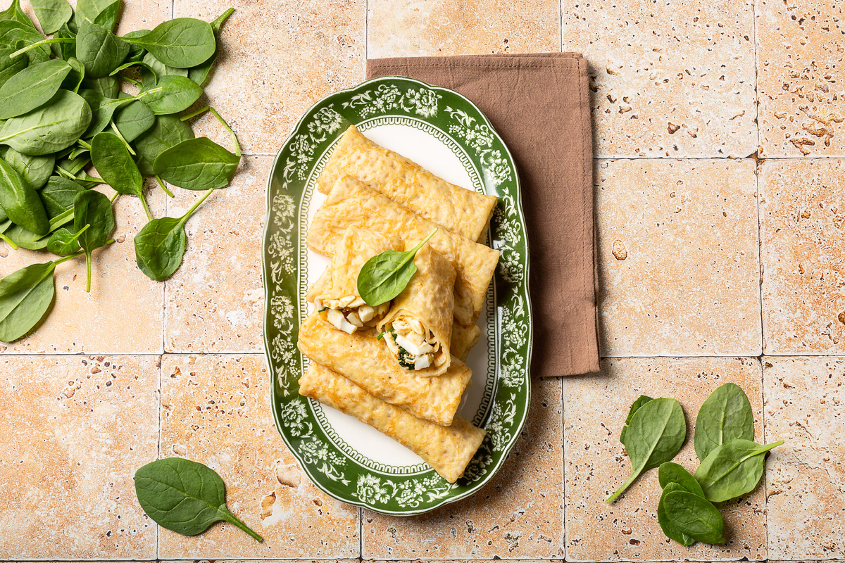 Задумали приготовить блины? Попробуйте эту оригинальную начинку — из варёных яиц, шпината и сыра бри. Получается сытно и сочно и очень вкусно! 1️⃣ Яйца отварите вкрутую, нарежьте мелким кубиком и обжарьте на сливочном масле. 2️⃣ Выньте яйца из сковороды и обжарьте на ней шпинат в течение 1–2 минут. 3️⃣ Охладите сыр в холодильнике и натрите его на мелкой тёрке. 4️⃣ Соедините сыр с яйцом и шпинатом, добавьте лук и специи. 5️⃣ Выложите начинку в блин и сверните его.