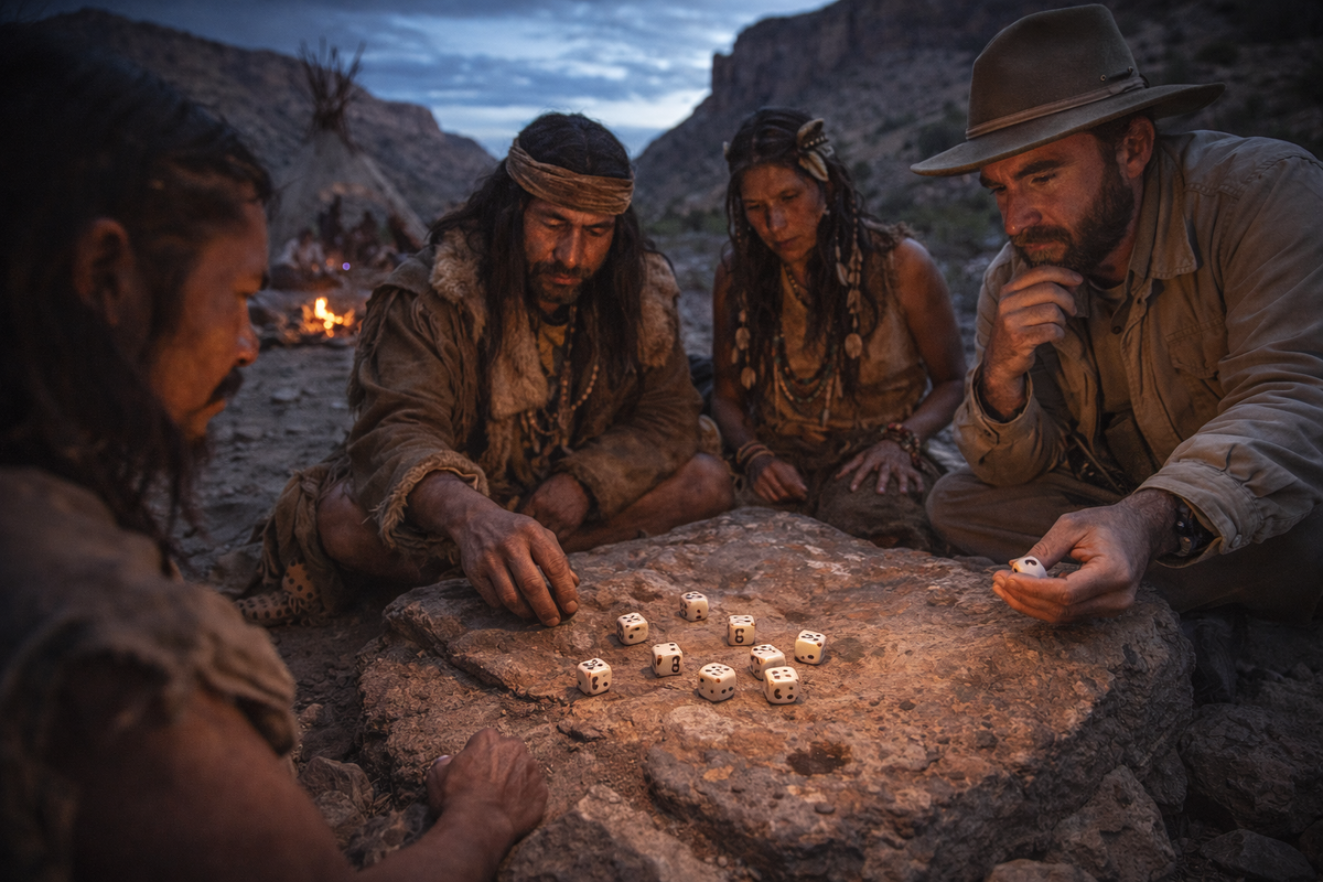Когда мы думаем о происхождении азартных игр, в голове всплывает Месопотамия, Древний Египет, может быть, Римская империя. Учебники десятилетиями рассказывали нам, что игральные кости появились где-то на Ближнем Востоке около 5–6 тысяч лет назад. Так вот — похоже, учебники пора переписывать. Причём сдвигать дату не на пару веков, а сразу на шесть тысячелетий назад. Археолог Роберт Мэдден опубликовал исследование, в котором утверждает: коренные народы Северной Америки играли в кости 12 000 лет назад — на территории современного юго-запада США. Это конец последнего ледникового периода. Мамонты ещё бродят по континенту, до первых пирамид — восемь тысяч лет, а люди на этой земле уже вырезают игральные кости и придумывают к ним правила. Артефакты, о которых идёт речь, — это не привычные нам кубики с точками. Ранние кости индейских народов обычно выглядели как плоские палочки или пластинки из кости, дерева, камня, иногда из фруктовых косточек. Одна сторона была помечена — краской, насечками