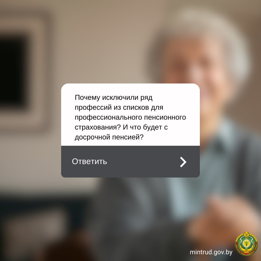 Разъясняем ряд моментов про дополнительную профессиональную пенсию ⚧ Если вы уже выработали стаж ▪️Право на профессиональную пенсию сохраняется полностью, так как учитывается на основании документов, действующих в период работы. 🚻 Если ваш стаж формируется прямо сейчас ▪️И ваша профессия осталась в обновлённых списках — стаж идёт дальше, как и шел. 🚮 Что с аттестацией? ▪️Внеочередную проходить не нужно. Результаты текущей аттестации действуют до конца её срока. 🎦 Почему исключили профессии? ▪️Не потому, что они "перестали быть вредными". А потому что они фактически исчезли из экономики (устаревшие технологии, другие названия должностей) или долгие годы ни на одном предприятии не подтверждали реальную вредность по результатам аттестации.