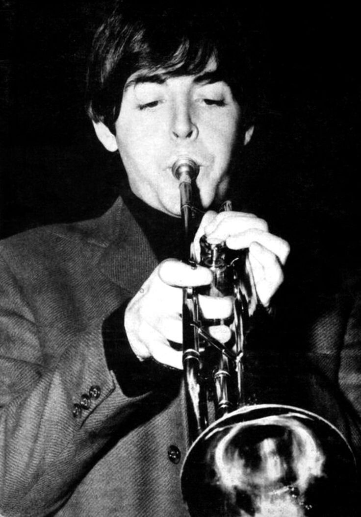 Здравствуйте, друзья! Сегодня я предлагаю вашему вниманию очередной эпизод из жизни юного жителя Ливерпуля Пола Маккартни. Как известно, Пол, что называется «с младых ногтей», умел извлекать мелодию из чего угодно, даже из уставленного стаканами стола. В тринадцать лет он принялся осваивать купленную ему отцом трубу. Когда же семья приобрела барабанную установку для младшего брата Пола Майка, он пристрастился и к ней, а вскоре начал уже довольно уверенно играть на ударных и в дальнейшем плодотворно использовал это умение на всём протяжении своей музыкальной карьеры. Кроме того, Пол уже мог вполне прилично исполнять на папином пианино популярные инструментальные номера. Его левая и правая руки использовали все возможные варианты игры, и вскоре он знал о музыкальном диапазоне куда больше, чем бренчавшие на гитарах пацаны из местных скиффл-групп. В тот пам